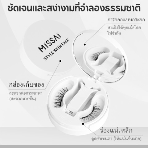 ขนตาปลอมแม่เหล็กจาก MISSAI ที่ช่วยให้ดวงตาดูคมหวานแบบ “มังงะ” ได้ง่ายๆ โดยไม่ต้องใช้กาว ลดโอกาสระคายเคืองและไม่ทำร้ายขนตาจริง ใส่ได้รวดเร็ว เหมาะทั้งมือใหม่และคนที่ต้องการลุคเป๊ะในเวลาจำกัด พร้อมกล่องเก็บแบบ All-in-one พกพาสะดวกและถูกสุขอนามัย