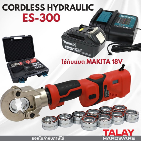 ES300 Hydraulic Crimping Tool เครื่องย้ำสายไฟไร้สายระบบไฮดรอลิค 18V ใช้แบต MAKITA ให้แรงอัดสูง ย้ำแน่น งานไว เหมาะทั้งงานติดตั้งไฟฟ้า งานตู้คอนโทรล งานโซลาร์ และงานช่างภาคสนามที่ต้องการความคล่องตัว ไม่ต้องพึ่งไฟบ้าน