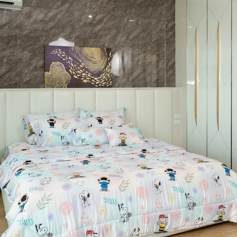 ชุดผ้าปู-ผ้านวม เนื้อผ้า Bamboo 100% ทอ 1000 เส้นด้าย ลาย Snoopy ดอกไม้2 สินค้าลิขสิทธิ์แท้จาก USA ดีไซน์น่ารักมีเอกลักษณ์ พร้อมอัปเกรดสัมผัสการนอนให้ “นุ่มละมุน เย็นสบาย” ด้วยผ้าเยื่อไผ่ธรรมชาติทอแน่นพิเศษ เหมาะทั้งคนผิวแพ้ง่ายและคนที่ชอบความสบายแบบพรีเมียมทุกคืน