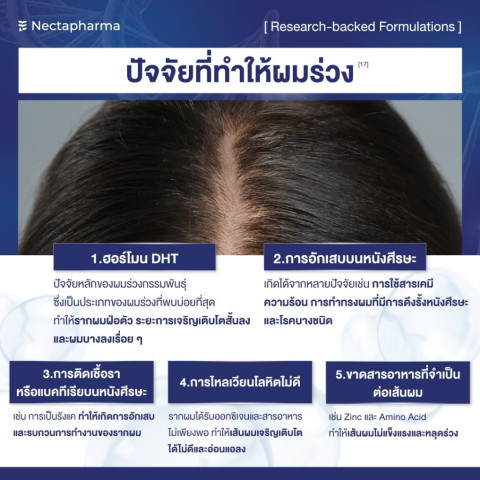 โฟกัสที่ต้นเหตุผมร่วงจากฮอร์โมน: ช่วยลดการทำงานของเอนไซม์ 5α-Reductase ที่เกี่ยวข้องกับการเกิด DHT