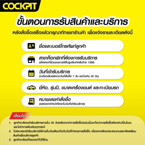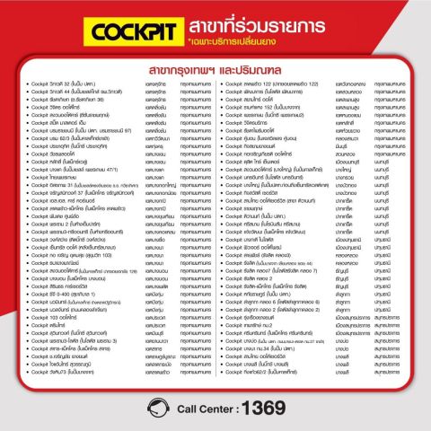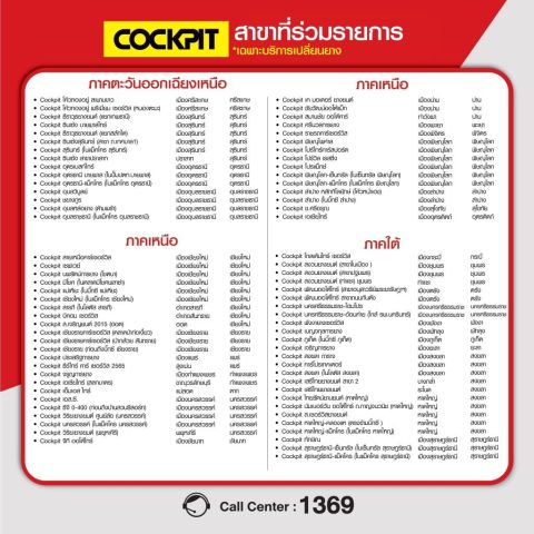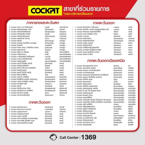 สาขาค็อกพิทที่ต้องการเข้ารับบริการ (ตรวจสอบสาขาที่ร่วมรายการจากรูปสินค้า หรือโทร 1369)