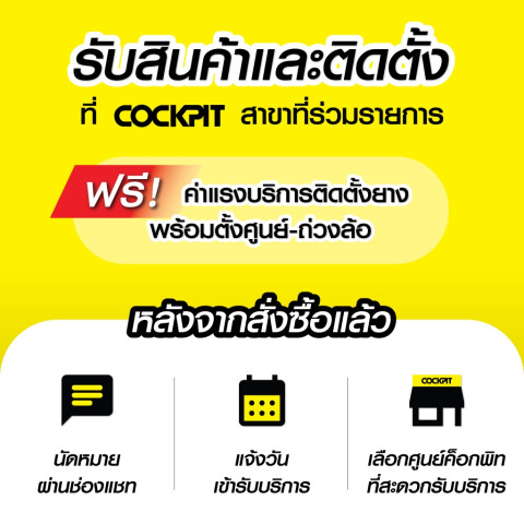 หมายเหตุ: เพื่อความแน่ใจว่าขนาดและรุ่นยางเหมาะกับรถของคุณ แนะนำให้ตรวจสอบคู่มือรถ หรือโทรสอบถาม Call Center 1369 หรือสาขาค็อกพิทก่อนกดสั่งซื้อ