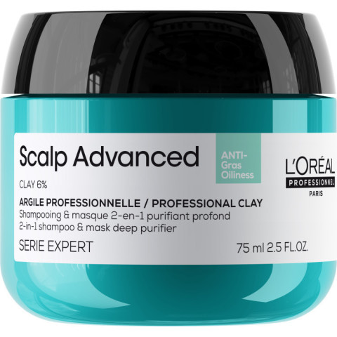 [สินค้าสมนาคุณงดจำหน่าย] SCALP ADVANCED ANTI-OILINESS CLAY มาส์กเนื้อเคลย์ชำระล้างสิ่งตกค้าง ขนาด 75 มล. จาก L’Oréal Professionnel Paris มาส์กทำความสะอาดหนังศีรษะสูตรเฉพาะสำหรับคนผมมันและหนังศีรษะมัน ช่วยดูดซับความมันส่วนเกินและสิ่งสกปรกตกค้างอย่างล้ำลึก พร้อมบำรุงให้หนังศีรษะรู้สึกสะอาด โล่งสบาย และสดชื่นยาวนาน เพื่อเส้นผมที่พลิ้วเบาสบาย ดูมีวอลลุ่ม ไม่ลีบแบน
