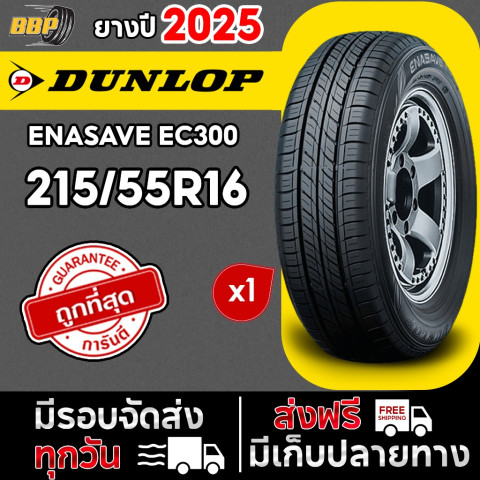 ยาง DUNLOP EC300 ขนาด 215/55R16ปี 2025 (1 เส้น) มาพร้อมจุ๊บลมยางฟรี และการันตีคุณภาพทุกเส้น ในราคาพิเศษเพียง 2,433.50 บาท เหมาะสำหรับรถเก๋งและรถอเนกประสงค์ที่ต้องการสมดุลระหว่างความเงียบ นุ่มสบาย และความคุ้มค่าในการใช้งานระยะยาว