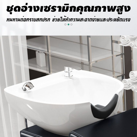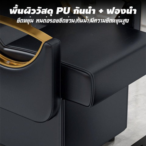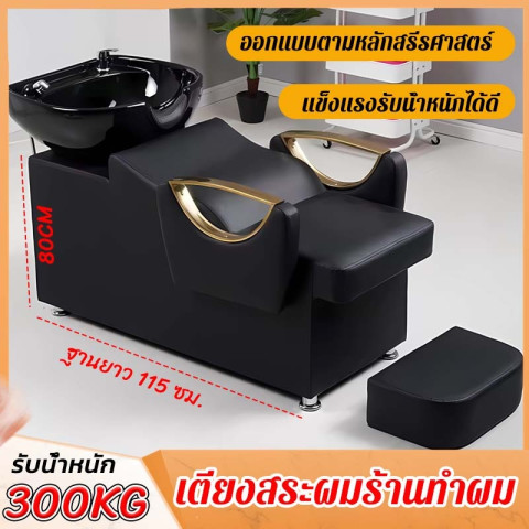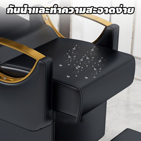เตียงสระผม กันน้ำกันรอยทนสึกหรอ ฟองน้ำยืดหยุ่นสูง รุ่นดีไซน์ทันสมัย สีดำเรียบหรู เหมาะสำหรับร้านทำผม ซาลอน ร้านนวดสปา ร้านเสริมสวย รวมถึงใช้ในบ้านสำหรับผู้ที่ต้องการมุมสป่าส่วนตัว รองรับการใช้งานหลากหลายทั้งสระผม นวดหน้า ทำทรีตเมนต์รมควัน แคะหู หรือบำรุงผิวหน้าและหนังศีรษะได้อย่างสะดวกสบาย