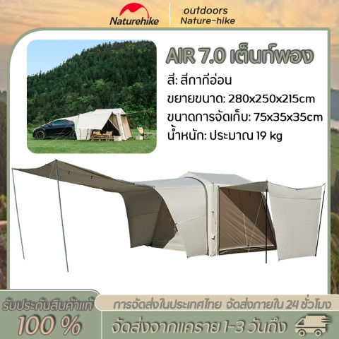 Naturehike AIR7.0 เต็นท์รถพองสำหรับ SUV รุ่น CNK2350WS022 คือไอเท็มแคมป์ปิ้งที่ยกระดับการพักผ่อนข้างรถให้ “กางไว อยู่สบาย และกันแดดกันฝนได้จริง” ด้วยโครงสร้างแบบหลอดลมพอง (Inflatable) ที่ช่วยให้ติดตั้งได้สะดวก เหมาะสำหรับทริปครอบครัว เดินทางไกล หรือแคมป์แบบเน้นความสบาย พร้อมช่องระบายอากาศด้านข้าง ช่วยถ่ายเทอากาศ ลดความอับชื้นในเต็นท์