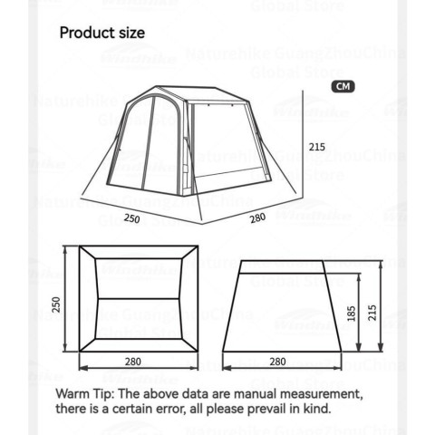 ขนาดเมื่อกาง: 280 x 250 x 215 ซม.