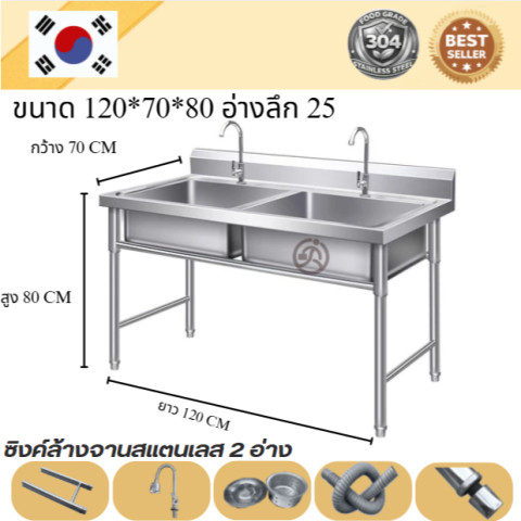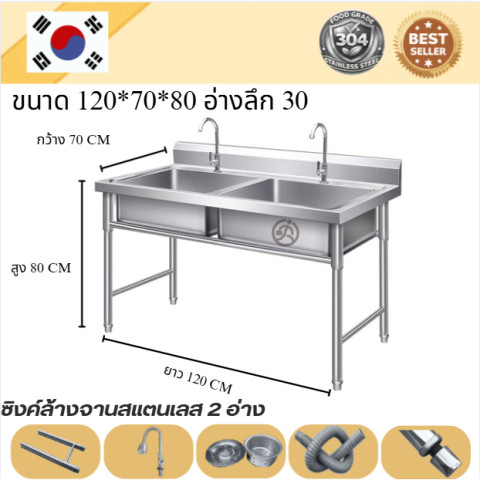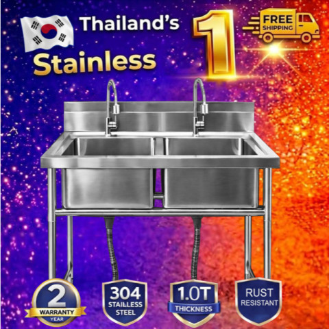 Stainless steel sink / อ่างล้างจานสแตนเลส 2 อ่าง แข็งแรง ทนทาน ดีไซน์ใช้งานจริง เหมาะทั้งครัวบ้าน ร้านอาหาร และพื้นที่เตรียมอาหารทั่วไป มาพร้อมโครงสร้างมั่นคง เสริมคานด้านล่าง รองรับการใช้งานหนักได้ดี ทำความสะอาดง่าย ดูแลรักษาสะดวก ใช้งานได้ยาวนาน คุ้มค่ากับราคา 6,800.00 บาท