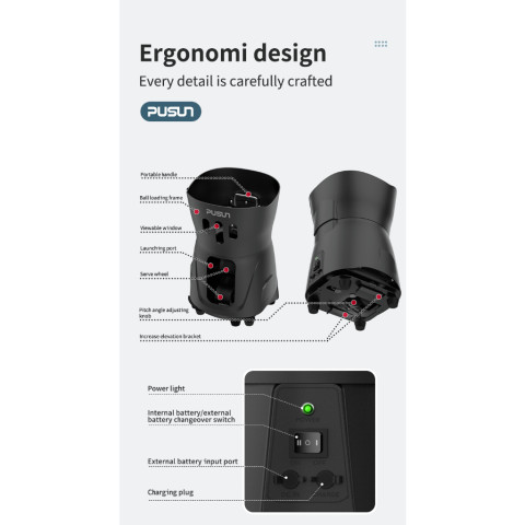 【พร้อมส่ง】Pusun PT-MINI Pro เครื่องยิงลูกเทนนิสอัจฉริยะ (Design Tennis Ball Machine) ราคา 19,200.00 บาท รุ่นยอดนิยมสำหรับซ้อมคนเดียวและการสอนในคลาส ช่วยให้การฝึกซ้อมแม่นยำขึ้นด้วยการปรับความเร็ว ความถี่ และมุมยิงได้ตามต้องการ ผ่านแอปควบคุมเฉพาะ ใช้งานสะดวก น้ำหนักเบา เหมาะทั้งในร่มและพื้นที่จำกัด