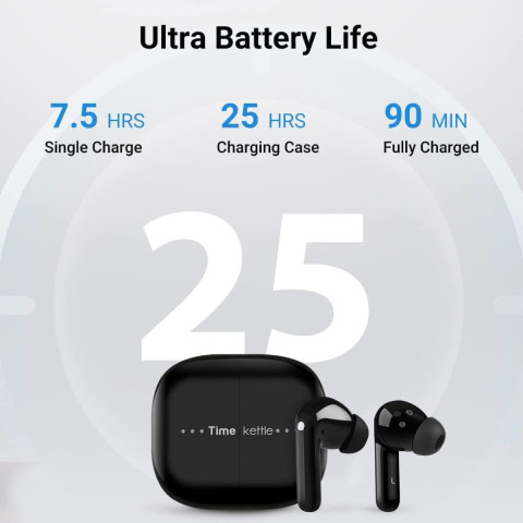 ความจุแบตเตอรี่ต่อข้าง: 50mAh พร้อมเคสชาร์จรวมให้เวลาใช้งานสูงสุดประมาณ 25 ชั่วโมง