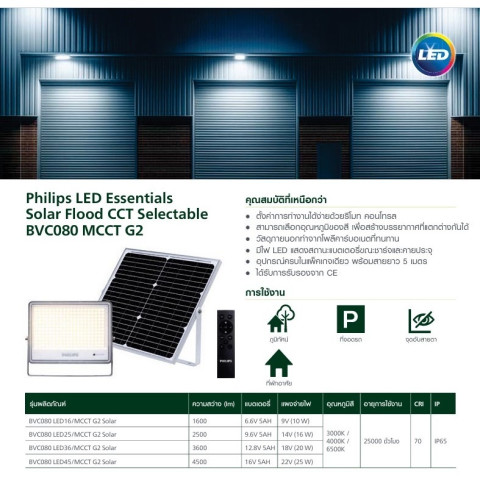 หากคุณกำลังมองหาสปอร์ตไลท์โซล่าเซลล์ที่สว่างจริง ประหยัดจริง และไว้ใจได้ในระยะยาว Philips สปอร์ตไลท์โซล่าเซลล์ รุ่น BVC080 MCCT G2 คือคำตอบที่ลงตัว ทั้งด้านคุณภาพ ความทนทาน และความคุ้มค่าในการลงทุนสำหรับทุกพื้นที่ของคุณ