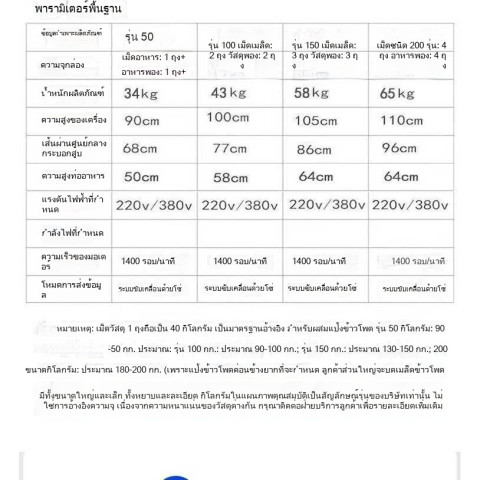 ความจุโดยประมาณ: 250 กิโลกรัมต่อรอบ (ขึ้นอยู่กับชนิดวัตถุดิบ)
