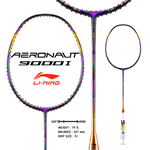 สัมผัสพลังควบคุมและความเร็วระดับโปรกับ ไม้แบดมินตัน LINING AERONAUT 9000i (BLACK/GOLD/PURPLE) ไม้แบดรุ่นท็อปสำหรับสายบุกที่ต้องการเกมรุกดุดัน ตบคม ควบคุมง่าย และตอบสนองรวดเร็ว น้ำหนักเบาแต่ให้แรงส่งเต็มวงสวิง เหมาะทั้งนักแข่งและผู้เล่นจริงจังที่ต้องการอัปเกรดฝีมือในสนาม