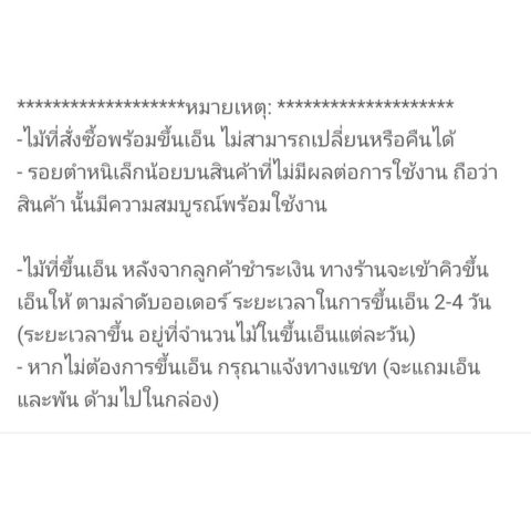 ไม้ที่สั่งซื้อพร้อมขึ้นเอ็น ไม่สามารถเปลี่ยนหรือคืนได้ทุกกรณี เนื่องจากมีการแถมและขึ้นเอ็นเฉพาะให้ลูกค้าแต่ละรายการ