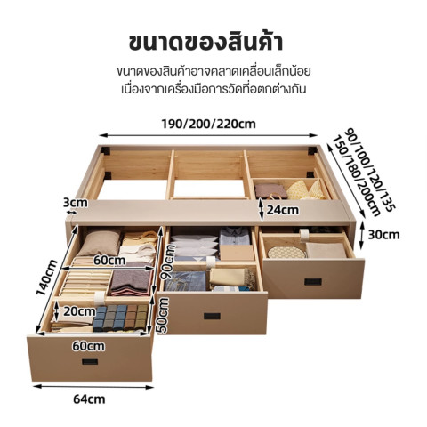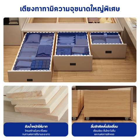 ฟังก์ชัน: เตียงพร้อมช่อง/พื้นที่เก็บของใต้เตียง จุของได้เยอะ