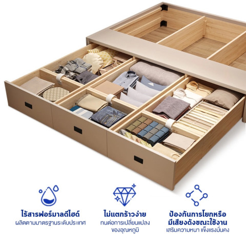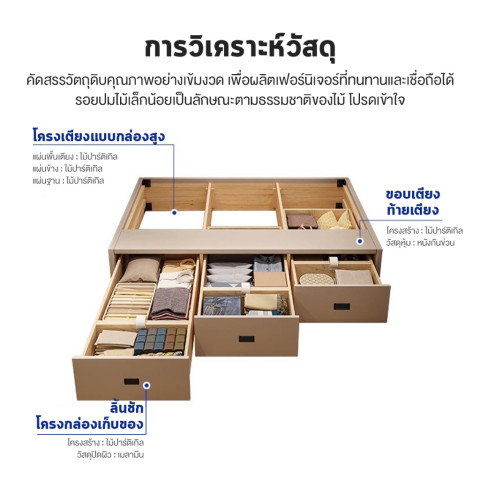 เตียงนอนขนาด 6 ฟุต พร้อมฟังก์ชันเก็บของใต้เตียง ช่วยเพิ่มพื้นที่จัดเก็บโดยไม่เปลืองพื้นที่ห้อง