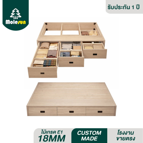 MOLESUN เตียง+ที่เก็บของ รุ่น TT15 สีบีช ขนาด 180x200 ซม. สูง 30 ซม. เป็นตัวเลือกที่ตอบโจทย์ทั้งเรื่องดีไซน์และฟังก์ชันการจัดเก็บ เหมาะสำหรับผู้ที่ต้องการให้ห้องนอนสวยสะอาดตาและเป็นระเบียบในชิ้นเดียว