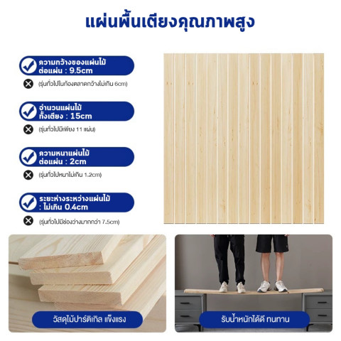 พื้นเตียงเรียบแน่น รองรับที่นอนเต็มแผ่น ช่วยยืดอายุการใช้งานของที่นอน