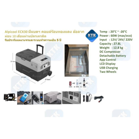 Alpicool CX30 ตู้เย็นพกพา 12V/24V ขนาด 27.8 ลิตร รุ่น CX Series มาพร้อมล้อลากและมือจับแบบกระเป๋าเดินทาง ให้คุณพกความเย็นไปได้ทุกที่ ทั้งทริปแคมป์ปิ้ง ออกทริปต่างจังหวัด หรือติดรถไว้ใช้งานได้ตลอดเวลา รองรับอุณหภูมิตั้งแต่ 20°C ถึง -20°C แช่เย็นก็ได้ แช่แข็งก็พร้อม ใช้งานได้ทั้งในรถยนต์ รถตู้ รถแคมป์ และเรือ