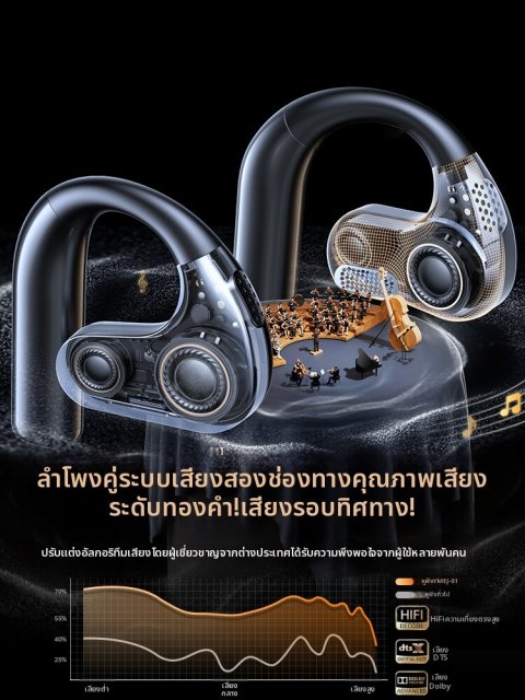 สัมผัสประสบการณ์เสียงยุคใหม่กับ หูฟังไร้สายระดับไฮเอนด์ แบบกระดูกส่งเสียง ที่ออกแบบมาเพื่อคนรักเสียงเพลงและสายเฮลธ์ตี้โดยเฉพาะ ให้คุณเพลิดเพลินกับเสียงคมชัดรอบทิศทาง โดยไม่ต้องปิดกั้นเสียงจากภายนอก เหมาะสำหรับการวิ่ง ออกกำลังกาย ปั่นจักรยาน หรือใช้งานในชีวิตประจำวันได้อย่างปลอดภัยและสะดวกสบาย