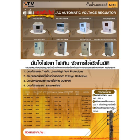 ประเภท : หม้อเพิ่มไฟ / เครื่องปรับแรงดันไฟฟ้าอัตโนมัติ (Automatic Voltage Regulator)