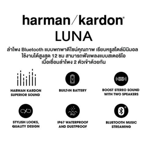 หากคุณกำลังมองหาลำโพงบลูทูธที่รวมทุกอย่างไว้ในตัวเดียว ทั้งเสียงดี ดีไซน์สวย วัสดุพรีเมียม กันน้ำได้ และใช้งานสะดวกในชีวิตประจำวัน Harman Kardon Luna คือคำตอบที่ลงตัวในงบประมาณสบายกระเป๋า พร้อมประกันศูนย์มหาจักรให้คุณใช้งานได้อย่างมั่นใจยาวนาน