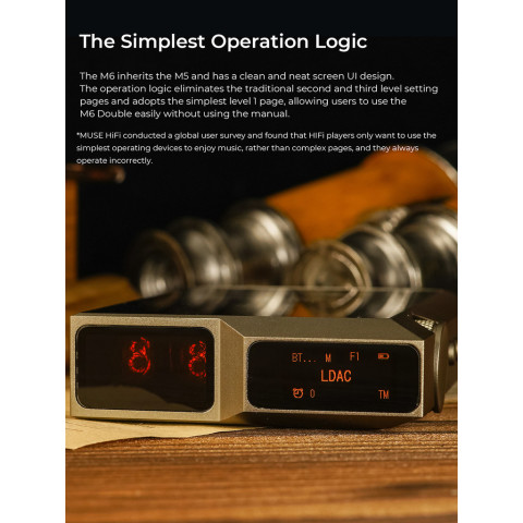 ด้วยดีไซน์ที่โดดเด่น หลอดอิเล็กตรอนแบบพกพาที่เล็กที่สุดในโลก การจัดเรียงหลอดคู่ที่ไม่ซ้ำใคร ผสานกับชิป DAC ระดับเรือธงและ Bluetooth สเปกสูง Musehifi M6 Double คือคำตอบสำหรับผู้ที่ต้องการทั้งเสียงระดับ HiFi และเอกลักษณ์ที่แตกต่างจาก DAC/AMP ทั่วไป