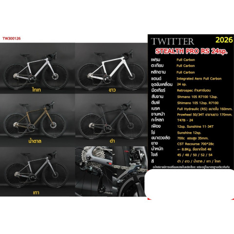 หากคุณกำลังมองหาจักรยานเสือหมอบคาร์บอนเต็มคันที่ให้ทั้งความเร็ว ความเบา การควบคุมที่มั่นใจ และสเปกระดับแข่งขันในราคาสมเหตุสมผล TWITTER STEALTH PRO RS 24sp. (2026) คือคำตอบที่พร้อมพาคุณไปได้ไกลและเร็วขึ้นในทุกเส้นทาง