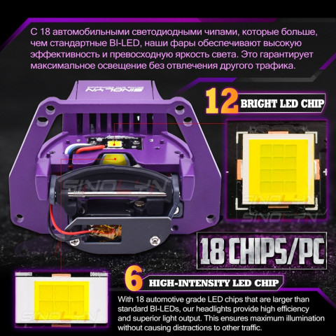 Fitment: ฐานเพลาเกลียวรองรับ H4, H7, H1, 9005, 9006 และยังติดตั้งกับโคมสะท้อนแสงอื่นได้ (อาจต้องปรับแต่งเล็กน้อย)