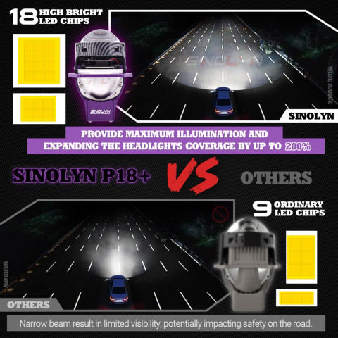 Sinolyn เลนส์โปรเจคเตอร์ Bi-LED คาร์บอนไฟเบอร์ 3 นิ้ว 130W ยกระดับไฟหน้ารถให้คมชัด สว่างไกล และดูพรีเมียมด้วยเลนส์แก้วเคลือบฟิล์มสีน้ำเงิน + บอดี้ลายคาร์บอนไฟเบอร์ พร้อมเส้นตัดแสงชัด ลดแยงตา ช่วยเพิ่มความปลอดภัยในการขับขี่ทั้งทางมืดและทางไกล ในชุดมาพร้อม D Shroud สำหรับงานติดตั้งที่สวยลงตัว