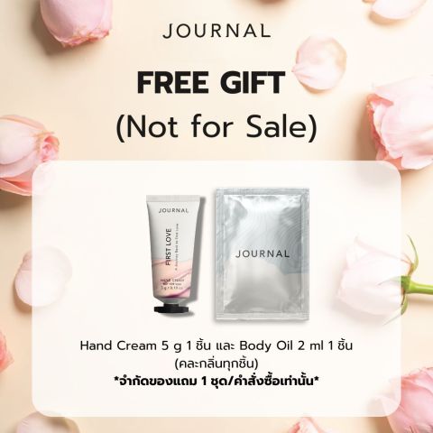 JOURNAL รับฟรีของขวัญ 2 ชิ้น คละกลิ่น โปรโมชันสุดพิเศษสำหรับลูกค้าที่เลือกซื้อสินค้า JOURNAL ที่ร่วมรายการ รับของขวัญไซซ์พกพาให้คุณพกความหอมและการบำรุงติดตัวได้ทุกวัน เหมาะทั้งใช้เองหรือมอบเป็นของขวัญในโอกาสพิเศษ