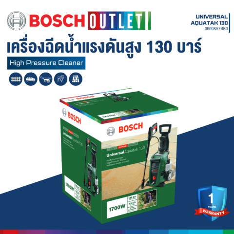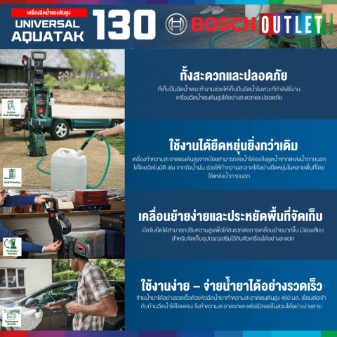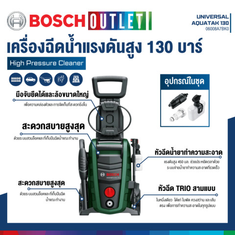 BOSCH Universal Aquatak 130 เครื่องฉีดน้ำแรงดันสูง 130 บาร์ รุ่น #06008A7BK0 พลังทำความสะอาดที่ช่วยให้งานล้างบ้าน ล้างรถ และทำความสะอาดพื้นที่รอบบ้าน “เสร็จไวขึ้น” แบบไม่เปลืองแรง ด้วยดีไซน์ที่คล่องตัว เคลื่อนย้ายง่าย และอุปกรณ์ครบพร้อมใช้งานทันที ในราคา 5,313.00 บาท