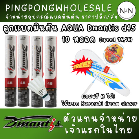 (แถมไม้แบดฟรี) ลูกแบดมินตัน Aqua Dmantis D45 ยกแพ็ก 10 หลอด (รวม 120 ลูก) จากร้าน Pingpongwholesale คุ้มสุดสำหรับซ้อมและแข่งในงบประหยัด ให้ฟิลลิ่งตีดี ใกล้เคียงลูกขนไก่ พร้อมความทนทานที่หลายคนชอบว่า “ทนใกล้เคียงลูกพลาสติก” และยังช่วยลดโอกาสทำให้เอ็นขาดง่าย เหมาะทั้งชมรม โรงเรียน และคนเล่นประจำที่ต้องการความคุ้มค่า