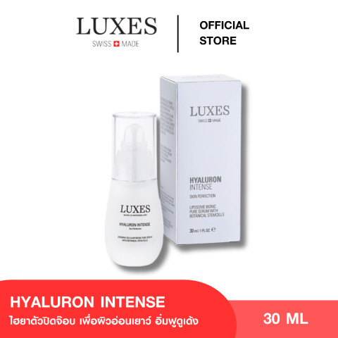 LUXES HYALURON INTENSE 30ml. เซรั่มไฮยาลูรอนเข้มข้นระดับพรีเมียม ช่วยเติมเต็มความชุ่มชื้นให้ผิวแบบล้ำลึก ผิวแลดูอิ่มฟู แน่นกระชับ ริ้วรอยดูจางลง พร้อมปลอบประโลมผิวและช่วยลดการอักเสบ เหมาะสำหรับผู้ที่มีผิวแห้ง ขาดน้ำ ผิวอ่อนล้า หรือผิวบอบบางแพ้ง่ายที่ต้องการเซรั่มอ่อนโยนแต่ให้ผลลัพธ์ชัดเจน