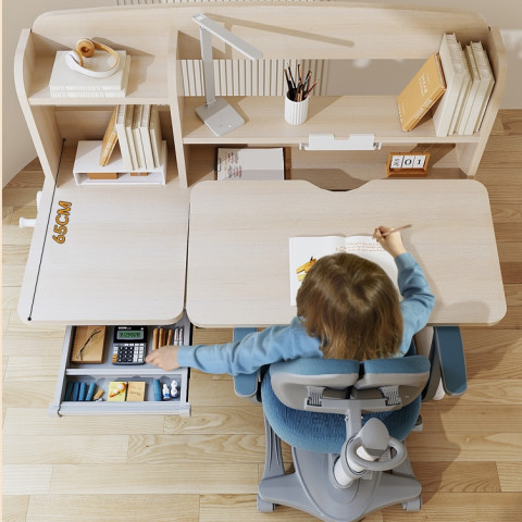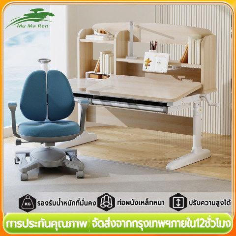 MuMaRen โต๊ะเขียนหนังสือเด็ก ชุดโต๊ะและเก้าอี้สำหรับเด็ก ดีไซน์เรียบง่ายทันสมัย โทนไม้ธรรมชาติ (Log color) ขนาด 120 ซม. เหมาะสำหรับมุมทำการบ้าน/อ่านหนังสือ ช่วยจัดท่านั่งให้เหมาะสมด้วยโต๊ะที่ปรับระดับได้ พร้อมพื้นที่จัดเก็บหลายชั้น จัดระเบียบหนังสือและอุปกรณ์การเรียนได้เป็นสัดส่วน