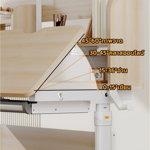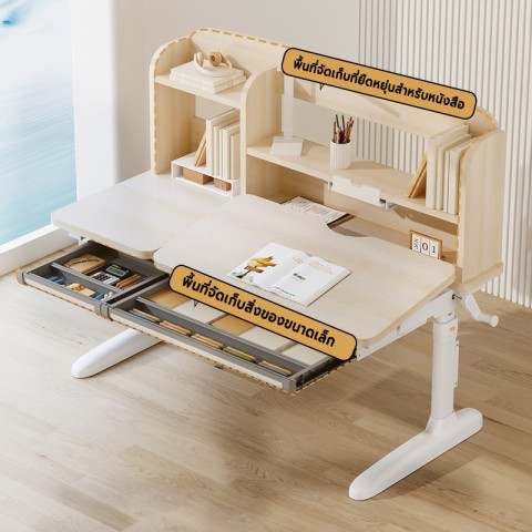 ระบบมือหมุน (Hand crank) ยก-ลดระดับได้ลื่น ปรับได้สะดวกระหว่างเรียนหรืออ่านหนังสือ