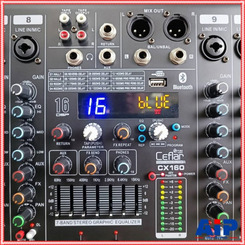 Ceflar CX-160 คือมิกเซอร์ที่ให้ฟังก์ชันครบ ทั้งปรับแต่งเสียง/เอฟเฟกต์/เล่นเพลง/เชื่อมต่อบลูทูธ เหมาะสำหรับคนที่ต้องการความคุ้มค่า ใช้งานได้จริง และควบคุมเสียงได้อย่างมืออาชีพในเครื่องเดียว