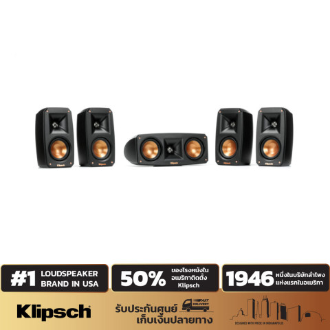 KLIPSCH REFERENCE THEATER PACK 5.0 เซ็ตโฮมเธียเตอร์ขนาดเล็กที่ให้พลังเสียงแบบโรงภาพยนตร์ในพื้นที่จำกัด ออกแบบให้ติดตั้งง่าย วางได้คล่องตัวทั้งในห้องนั่งเล่น คอนโด หรือห้องดูหนังส่วนตัว พร้อมเอกลักษณ์เสียงคมชัด รายละเอียดครบ และมิติเสียงรอบทิศทางที่ทำให้หนัง เกม และคอนเสิร์ตสนุกขึ้นทันที