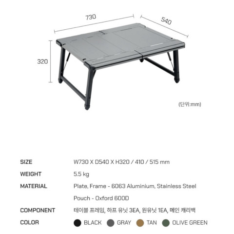 ขนาดโต๊ะ: W730 x D540 x H320 / 410 / 515 มม.