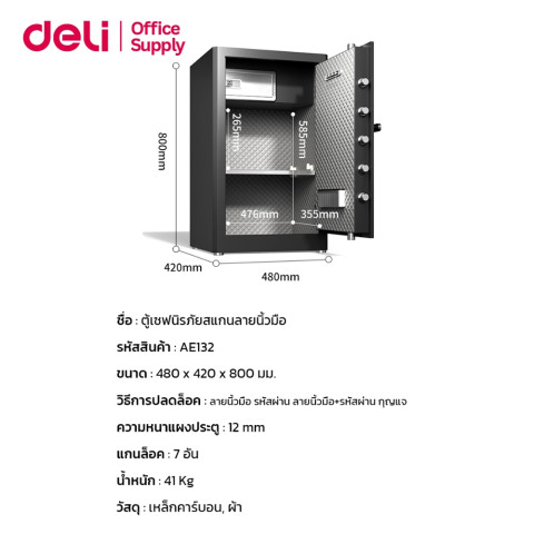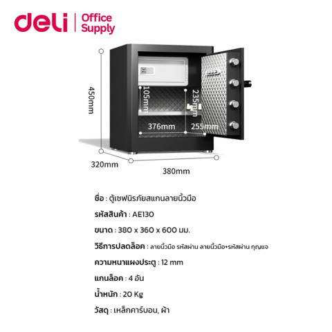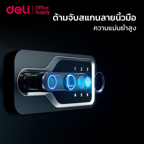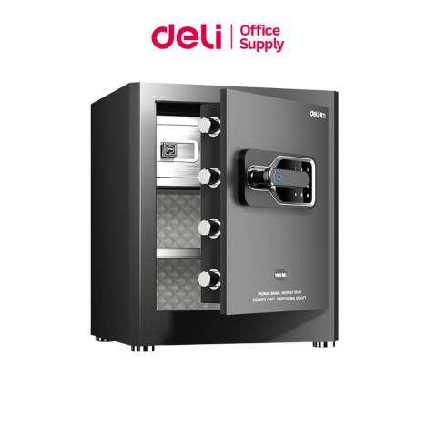 Deli เซฟ ตู้เซฟนิรภัย แสกนลายนิ้วมือ+รหัสผ่าน วัสดุเหล็กกันสนิม กันรอย แกนล็อค 4 อัน (Safe Box)