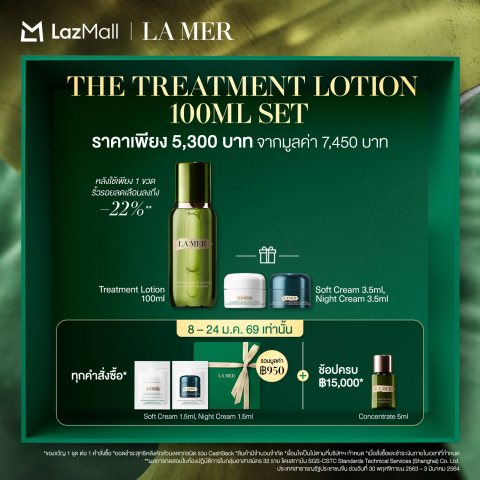 [8 - 24 Jan 26 Exclusive Set] La Mer - The Treatment Lotion • Treatment Lotion Signature เซ็ตโลชั่นบำรุงผิวระดับลักชัวรีที่ช่วยเติมความชุ่มชื้นแบบล้ำลึก ปลอบประโลมผิว และเตรียมผิวให้พร้อมรับการบำรุงในขั้นตอนถัดไป เนื้อโลชั่นสัมผัสบางเบาแต่ให้ความฉ่ำฟู ผิวดูนุ่ม เรียบ และโกลว์อย่างเป็นธรรมชาติ เหมาะสำหรับเป็นขั้นตอนสำคัญหลังล้างหน้าเพื่อยกระดับงานผิวให้ดูสุขภาพดีทุกวัน