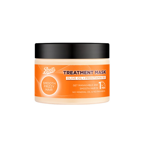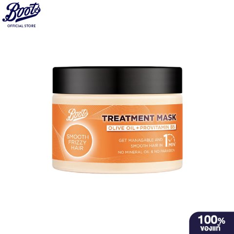 Boots Smooth Frizzy Hair Treatment Mask Hair Solution Collection 300 ml ทรีทเมนท์มาส์กบำรุงเส้นผมชนิดล้างออก สำหรับผมชี้ฟู จัดทรงยาก ช่วยฟื้นบำรุงให้ผมกลับมานุ่มสลวย ดูเรียบลื่นขึ้นภายใน 1 นาที* พร้อมดูแลทั้งเส้นผมและหนังศีรษะให้แลดูสุขภาพดี เหมาะสำหรับใช้เป็นทรีทเมนท์ประจำสัปดาห์หรือใช้แทนคอนดิชั่นเนอร์ในวันที่ผมต้องการการบำรุงเป็นพิเศษ