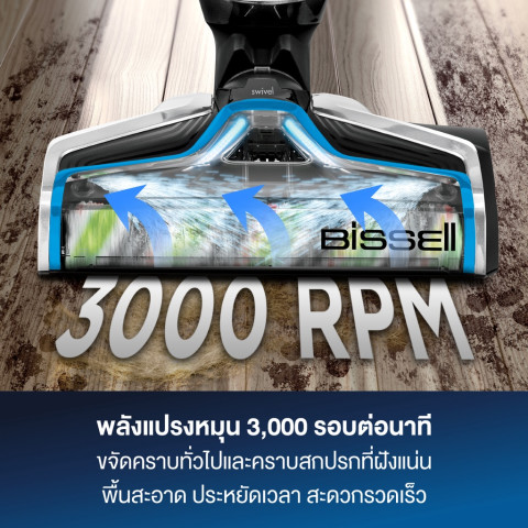 แปรงหมุนทรงพลัง 3000 RPM ช่วยขัดและเก็บสิ่งสกปรกได้ทั้งแบบแห้งและเปียก