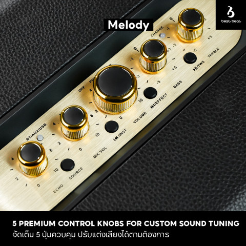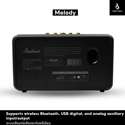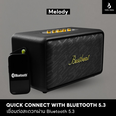 Bestbeat Melody ลำโพงบลูทูธพลังเสียงจัดเต็ม ดีไซน์พรีเมียม ยกระดับทุกบรรยากาศให้สนุกกว่าเดิมด้วยระบบเสียง 2.1 Channel และการปรับเสียง EQ 3 โหมดอัจฉริยะ (HiFi / DJ / EDM / Outdoor) ให้คุณเลือกโทนเสียงได้เหมาะกับทุกแนวเพลงและทุกสถานการณ์ ไม่ว่าจะฟังชิลในบ้าน ปาร์ตี้กับเพื่อน หรือพกออกนอกสถานที่ก็เอาอยู่ พร้อมรองรับการเชื่อมต่อครบทั้ง Bluetooth / USB / AUX / TF Card / RCA ใช้งานได้กับมือถือ พีซี และแล็ปท็อปอย่างยืดหยุ่น