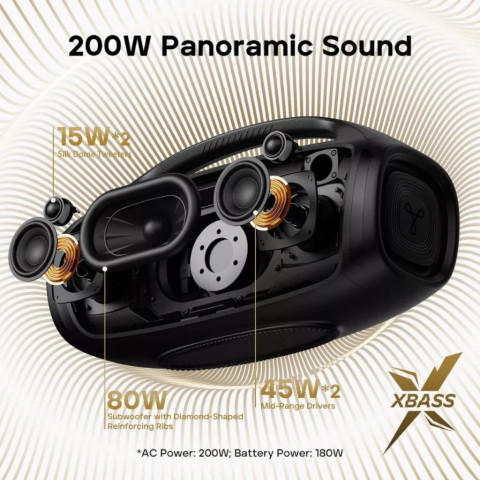 พลังเสียง 200W กระหึ่มครอบคลุมพื้นที่ เหมาะทั้งงานปาร์ตี้/คาเฟ่/กิจกรรมกลางแจ้ง