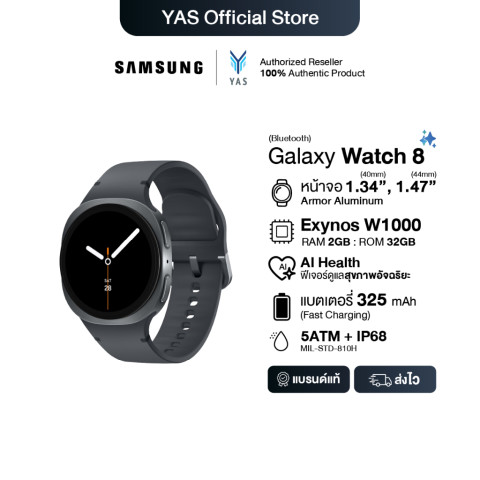 Samsung Galaxy Watch 8 (Bluetooth, 40/44 mm) สมาร์ทวอทช์ AI เพื่อนคู่ใจที่พร้อมยกระดับการดูแลสุขภาพ การออกกำลังกาย และการใช้ชีวิตประจำวันให้ฉลาดขึ้นในทุกจังหวะ ด้วยดีไซน์พรีเมียมสวมใส่สบายทั้งวัน พร้อมระบบอัจฉริยะที่ช่วยให้คุณติดตามความก้าวหน้าได้ง่าย และเชื่อมต่อกับสมาร์ทโฟนได้อย่างลื่นไหล