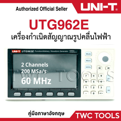 UNI-T UTG962E Waveform Generator 60MHz เครื่องกำเนิดสัญญาณ/กำเนิดรูปคลื่นไฟฟ้าแบบ 2 ช่องสัญญาณ ขนาดเล็กพกพาง่าย แต่ให้ประสิทธิภาพสูง เหมาะทั้งงานซ่อม ออกแบบ ทดลองวงจร งานแล็บ และการเรียนอิเล็กทรอนิกส์ ด้วยความละเอียดการปรับความถี่สูงสุดถึงระดับ 1μHz ช่วยตั้งค่าสัญญาณได้แม่นยำ เพิ่มความสะดวกและความเร็วในการทดสอบในหลากหลายสถานการณ์