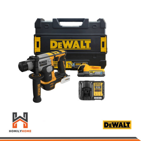 DEWALT สว่านโรตารี่ไร้สาย ไร้แปรงถ่าน 2 ระบบ 20V รุ่น DCH172E1T มาพร้อมแบต Powerstack 1.7Ah แท่นชาร์จ และกล่องเครื่องมือ DEWALT TSTAK เหมาะสำหรับงานติดตั้ง งานช่าง และงานเจาะคอนกรีตที่ต้องการความคล่องตัวแบบไร้สาย ตัวเครื่องทรง L-Shape ลำตัวสั้น จับถนัด ทำงานในพื้นที่แคบได้ง่าย พร้อมระบบช่วยลดแรงสั่นสะเทือน และระบบป้องกันการทำงานเกินกำลังเพื่อเพิ่มความปลอดภัยในการใช้งาน
