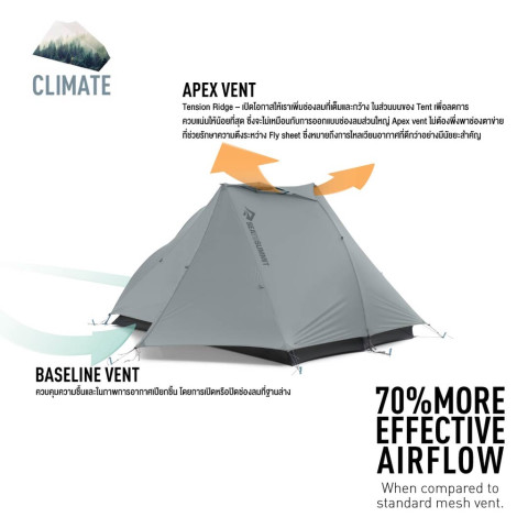 Oversized Apex Vent ช่วยระบายอากาศร้อนออกอย่างมีประสิทธิภาพ ลดการสะสมความชื้น โดยมีทั้ง Baseline Vent และ Apex Vent ที่ปรับได้ง่ายแม้อยู่ด้านในเต็นท์ใช้งานได้หลากหลายถึง 6 โหมด