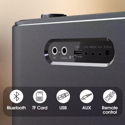 W-king H10 ลำโพงบลูทูธ 120W พร้อมไมค์ลอย 2 ตัว พลังเสียงจัดเต็มสำหรับสายปาร์ตี้/คาราโอเกะ เสียงดังชัด เบสแน่น เวทีเสียงกว้าง พร้อมไฟ LED ปรับได้ เพิ่มอารมณ์ความมันส์ ใช้งานได้ทั้งในบ้านและกลางแจ้งด้วยโหมด Indoor/Outdoor ปรับง่ายในปุ่มเดียว รองรับการเชื่อมต่อหลากหลาย ตอบโจทย์ทั้งฟังเพลง เล่นดนตรี และร้องเพลงในเครื่องเดียว